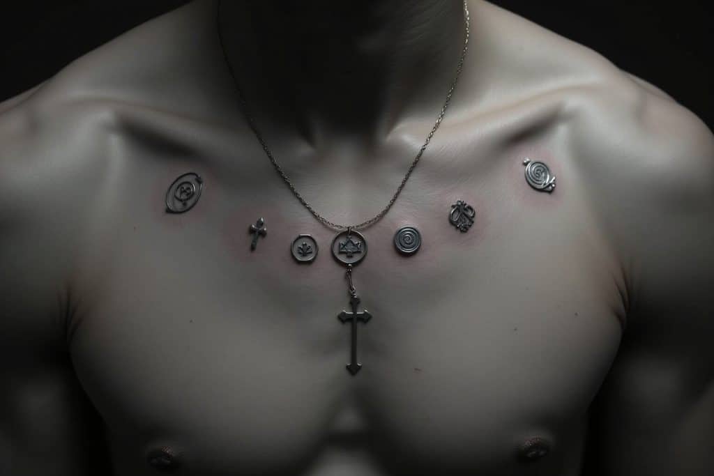 Die Brust ist eine intime Stelle für Tattoos, die oft für persönliche oder bedeutungsvolle Motive gewählt wird. Kleine Tattoos auf der Brust sind diskret und können nur von dir und denjenigen gesehen werden, denen du sie zeigen möchtest.