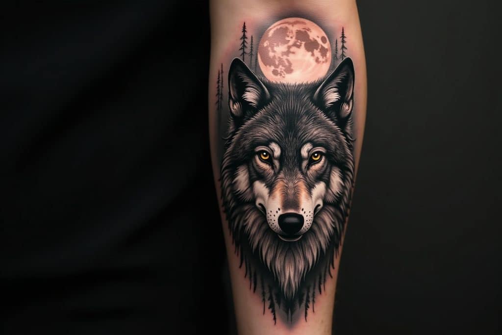 Wolfs-Tattoos mit Mond: Die Verbindung zur Nacht